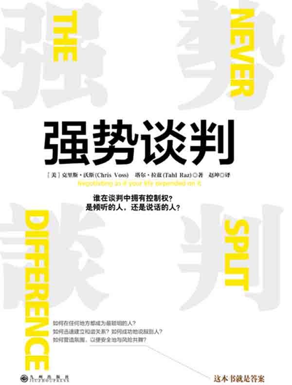 这是一本引人注目、不可或缺的谈判原则教程,是克里斯.沃斯作为一名前FBI国际人质危机谈判专家荣耀生涯的结晶。借助一些列险象环生的谈判实战,总结出经过检验行之有效的谈判策略和技巧。而本书的ZUI大价值在于,将专业的谈判技巧融入到普通人的日常生活,对于我们在学习和生活中的实际应用,如买车、谈判薪酬、买房、说服朋友等方面都获得更多的优势和成功。