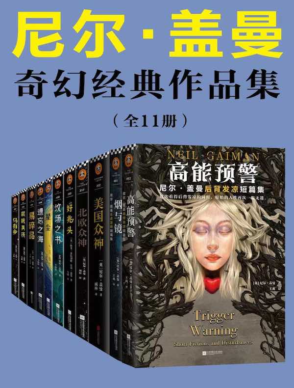 《高能预警:尼尔·盖曼后背发凉短篇集》:收录24个尼尔·盖曼经典短篇,写尽原始人性中的爱、恐惧、嫉妒、贪婪、猜忌和虚荣。《烟与镜:尼尔·盖曼头皮发麻短篇集》:收录29个尼尔·盖曼经典短篇,写尽人性中的爱、嫉妒、贪婪、自私、恐惧和悲伤。《美国众神》:奥丁、洛奇、安纳西……古老的神明们其实一直居住在美国,以人的姿态生活在我们身边,但他们失去了人类的信仰,变得衰弱。高科技、汽车、媒体……新一代的神从这些事物中诞生,凭借人类的依赖和信仰而越发强大。《北欧众神》:幻想文学大师尼尔·盖曼厘清了北欧神话的脉络,以全新的笔法,再现了这一辉煌壮丽的神话体系。《好兆头》:根据巫女艾格妮丝·风子的《精良准确预言书》,世界将在周六迎来终结……《坟场之书》:养大一个孩子,需要整片坟场一齐出力。《星尘》:这是一部弥漫着淡淡忧伤的成人童话,奇幻、诗意、美好而温暖。《遗忘之海》:童年记忆常常会被后来发生的事掩盖,变得隐约朦胧,可这些记忆并未消失。《易碎品》:在克苏鲁神话设定下的维多利亚时代,福尔摩斯的对手不再是人类……《蜘蛛男孩》:我们每个人,都是自己的神。我们每个人都是一串故事《乌有乡》:每一条昏暗的小巷里,都藏着一个通往新世界的口。