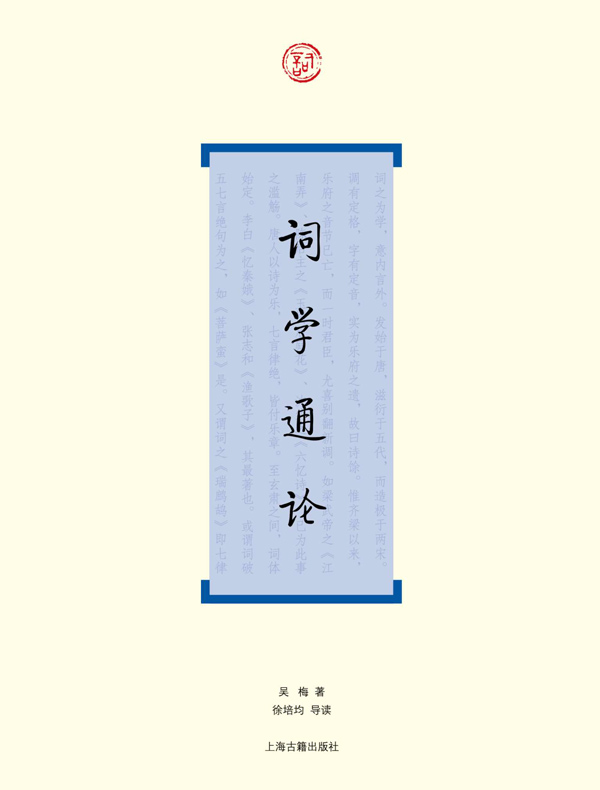 此书系“词系列”丛书之一种。《词学通论》是吴梅在大学教书时的一本讲义,也是他的代表作之一。所谓通论,即从各个方面、各个角度来研究词。归纳起来,主要是论词与音乐的关系、词的作法、词的发展史,以及对著名词人及其代表作的评价。第一章“绪论”,谈有关词的几个重要理论问题。第二至四章,分别为“论平仄四声”、“论韵”、“论音律”,皆围绕音乐问题而论词;第五章谈词之作法;第六至九章,为历代作家作品论。