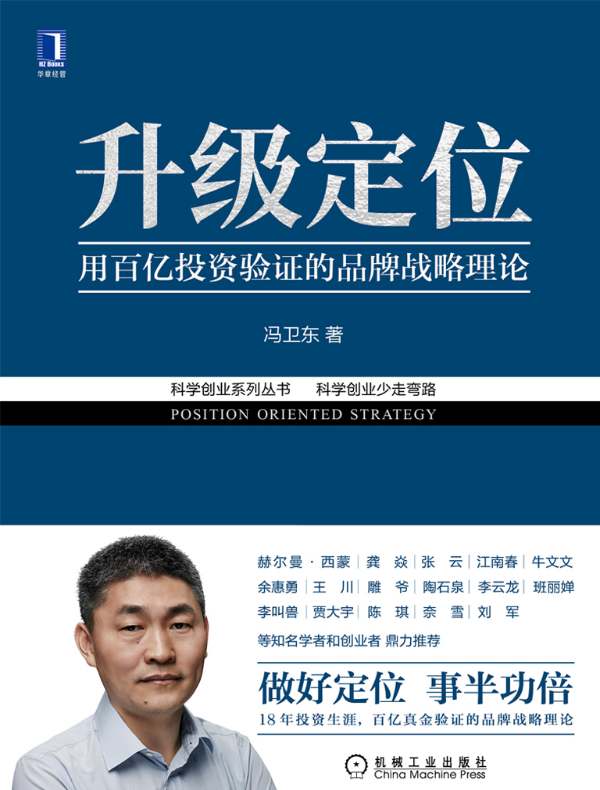 定位圈流传着一句话:定位一学就会,一用就错。还有人认为定位理论“运用之妙,存乎一心”。这都表明定位理论还不够完善,亟待发展。冯卫东在商业实践中结合多元学科知识对定位理论进行系统升级,提出了顾客价值配方、战略二分法、品牌商业模式、品类三界论、品牌战略五阶段等新的理论,并总结出品类命名、品牌起名、定位广告“二语三性法则”等清单化工具。本书是作者历经18年投资生涯,用百亿投资验证的经验总结,希望能帮你避免方向性错误,少走弯路,不踩大坑。