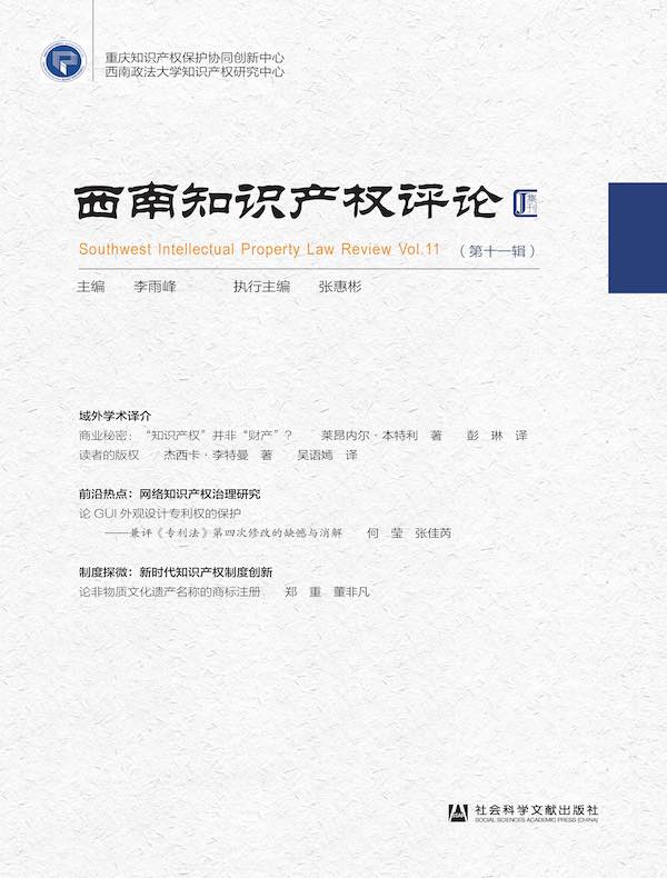 《西南知识产权评论》是西南政法大学知识产权研究中心、重庆知识产权保护协同创新中心主办的学术集刊。